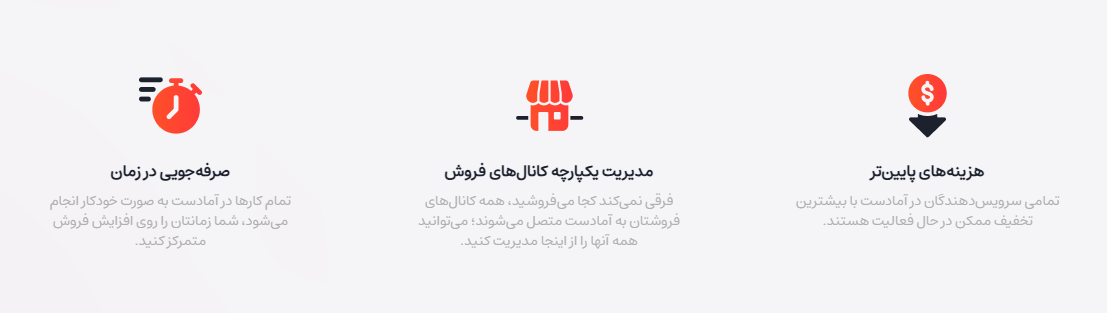 - اتصال فروشگاهها و کانالهای فروش شما به پنل آمادست