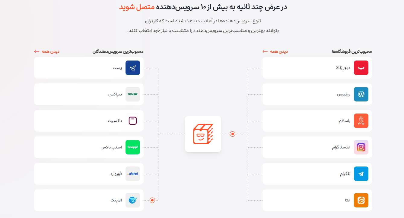 - امکان مقایسه قیمت و زمان ارسال بین سرویسدهندههای مختلف